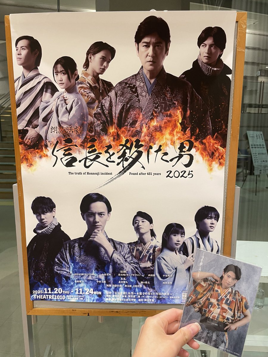初日公演観てきました😄明智光秀の物語とても愛があって素晴らしかったです🥺諸説ある本能寺の変はこのイメージになりました🤗ココリコ田中さん素敵でした✨(来場者特典とブロマイドを交換してくださった方ありがとうございました🙇) #信長を殺した男2025 #田中直樹(#ココリコ)