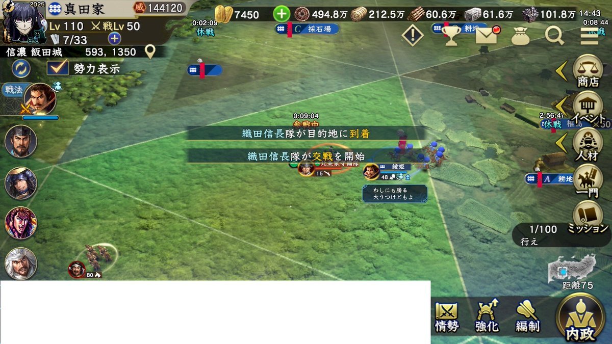 いろいろいじっていじっていじった結果 陸地60距離1分以内を目標にしてましたが たぶん80距離くらいまでは交戦1分以内なったかな? 陸でも夏以外で330まできました 米は力ですが速さも奇襲という点では強いですよね 今シーズンで海限界距離1分チャレンジ狙いたい #信長覇道 pic.x.com/O5oyly8iIM