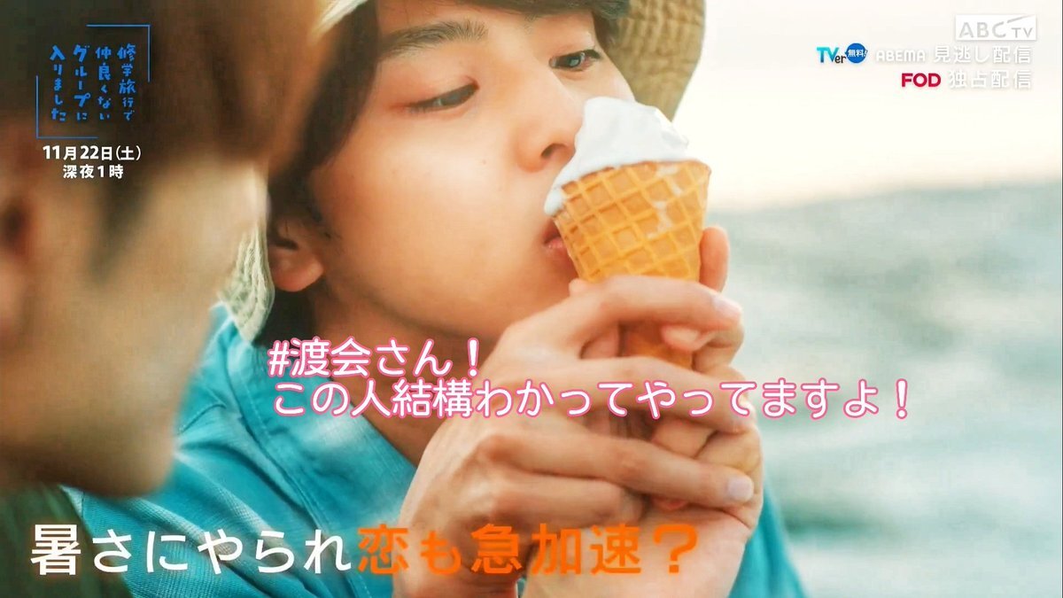 全話見れたの昨日までだった🤣(まあよし👍1話逃すぐらいどうってことなし←)四天王 一軍男子なのに性格までいいな!! #修学旅行で仲良くないグループに入りました #修仲 #TVer tver.jp/episodes/epiog…
