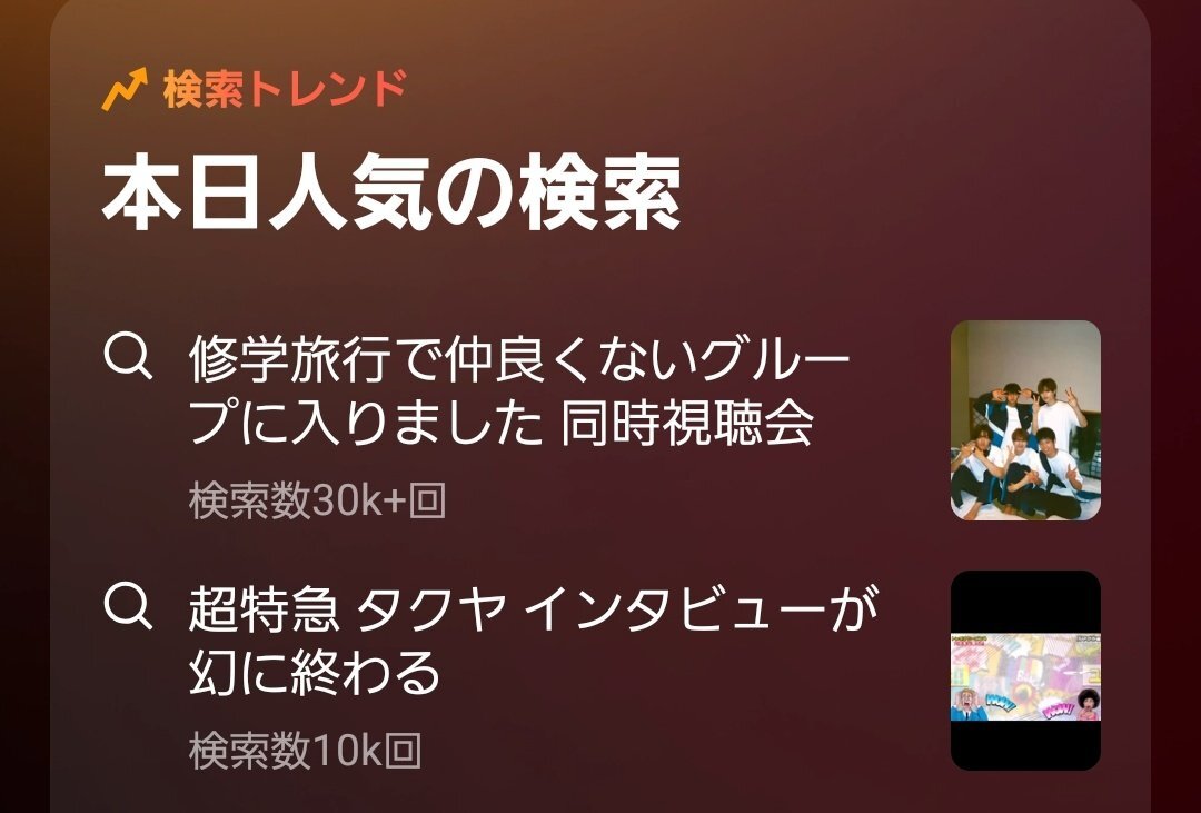 修仲の同時視聴会の事がTikTokの検索トレンドに?w🤣 でも今日は藤本さんお忙しいのかなぁ... 修学旅行で仲良くないグループに入りました #ドラマ修学旅行 #修仲 tver.jp/episodes/epsv1… pic.x.com/YkqKkjP19f