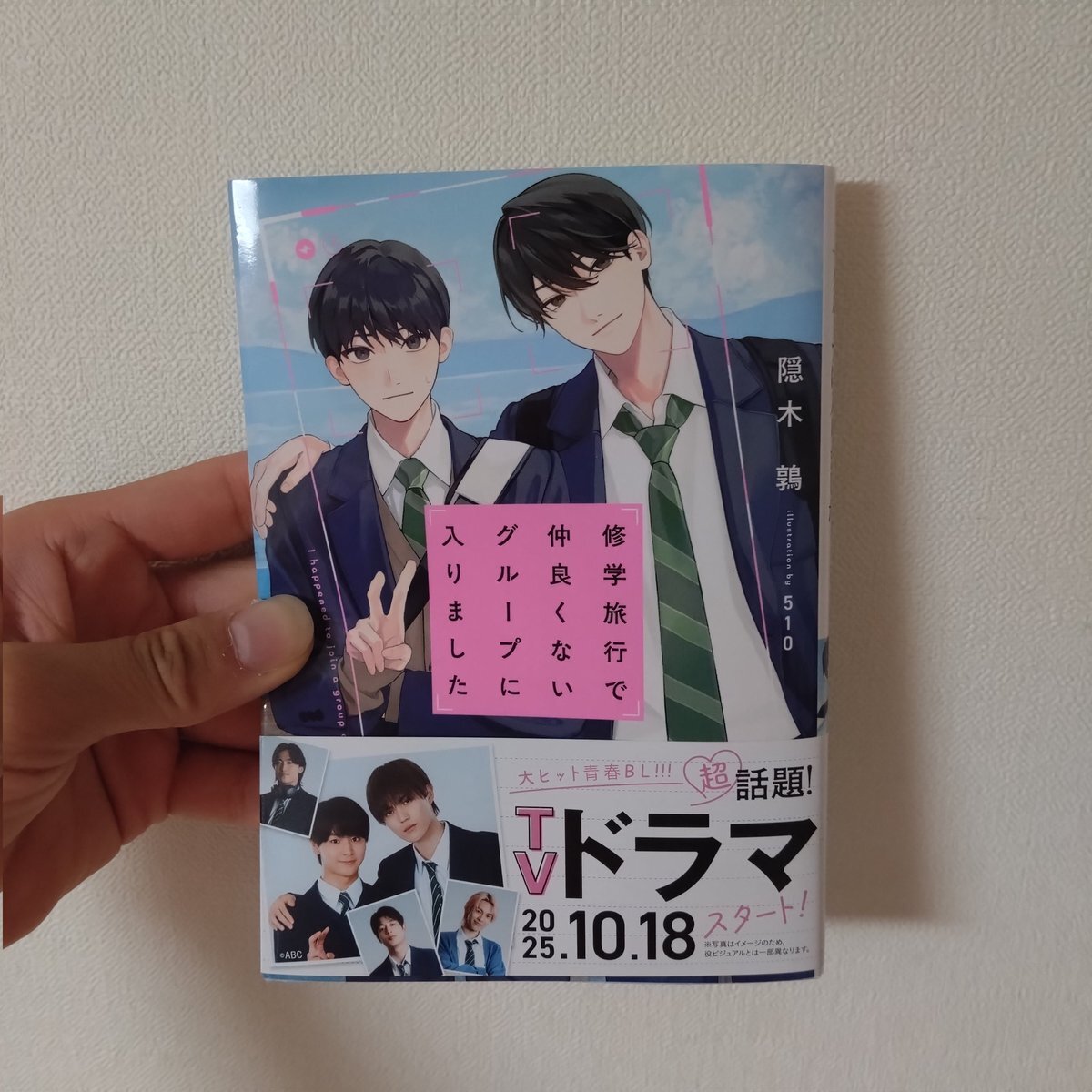とうとう買っちゃった♡ 隠木鶉サマの『修学旅行で仲良くないグループに入りました』 買ったら読んじゃう…読んだらドラマのネタバレになっちゃう…葛藤しました。 でも洸大クンとかんきちクンの帯が一冊しかなくて💦 #修仲 pic.x.com/wkhPFvwXXo