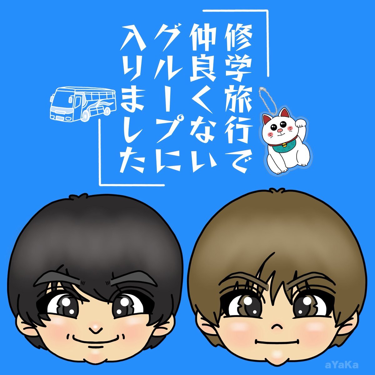 #修学旅行で仲良くないグループに入りました の2人をイメージしたイラスト🚌✨ かいてみました♪雰囲気だけでも伝わったら うれしいです☺️/// #ドラマ修学旅行 #藤本洸大 #簡秀吉 pic.x.com/mcY2jRUUB4