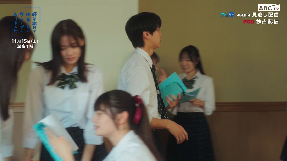 #修学旅行で仲良くないグループに入りました 🚌第𝟓話𝐏𝐑💨 修学旅行が終わっても 仲良くできるのは嬉しいけど… みんなの前で、やめてーーー🫸‼️ 一軍男子の嫉妬が止まらない🔥 𝟏𝟏月𝟏𝟓日(土)深夜𝟏時 𝐓𝐕𝐞𝐫で𝟏~𝟒話配信中 tver.jp/episodes/epchn… #藤本洸大 #簡秀吉 #桜木雅哉