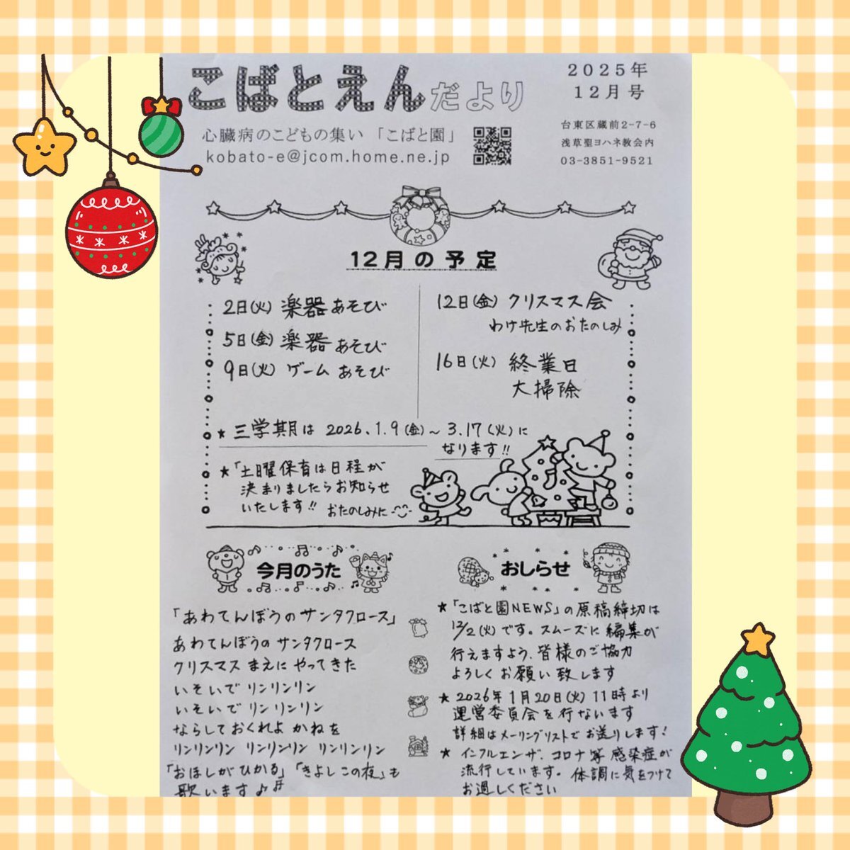 12月のお便りです🎄 クリスマス会楽しみですね インフルエンザなど風邪が流行ってますね 温かくして過ごしましょう🧣 #心臓病 #心疾患 #先天性心疾患 #医療的ケア児 #医ケア児 #付き添い入院 #心室中隔欠損症 #心房中隔欠損症 #単心室 #単心房 #修正大血管転位症 #両大血管右室起始症 pic.x.com/y2aRzqH8bH