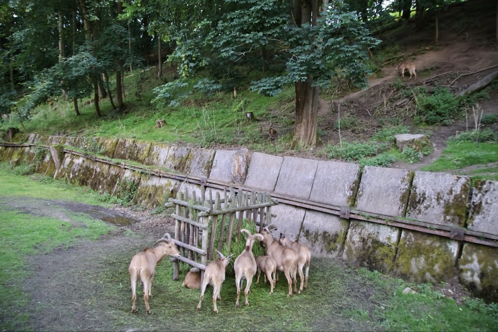 #俺流ウシ科エブリデイ 鬣羊の展示場。木々が生える斜面に、下には餌場のある平地。高低差のある広めなスペース。#バーバリーシープ #dvurkralovezoo pic.x.com/Patnk6vViv