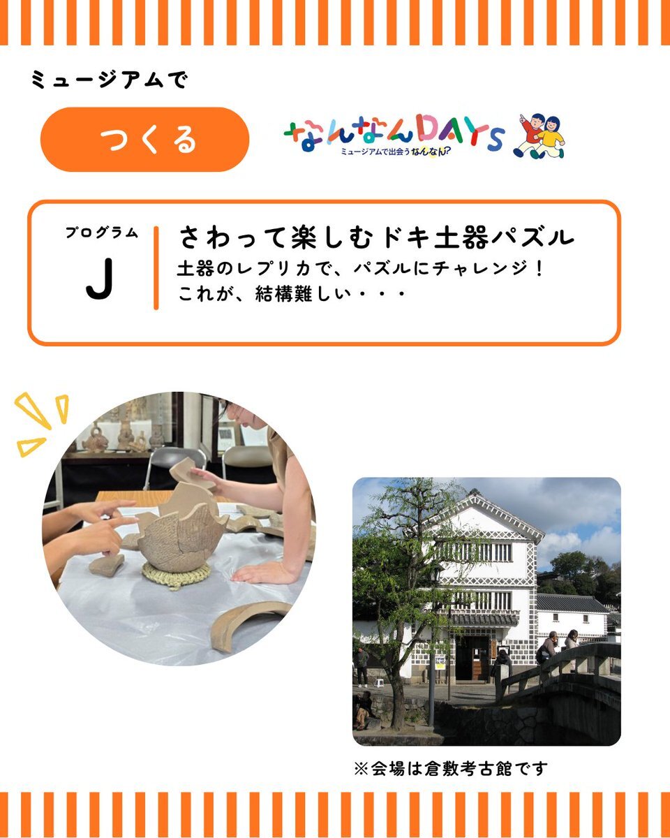 #なんなんDAYS 開催情報④ なんなんDAYSで楽しめるプログラムを紹介! 📷今回ご紹介するのは、ミュージアムで「つくる」 project.ohara.or.jp/nannandays #大原美術館 #倉敷考古館 pic.x.com/C84RSVERDq