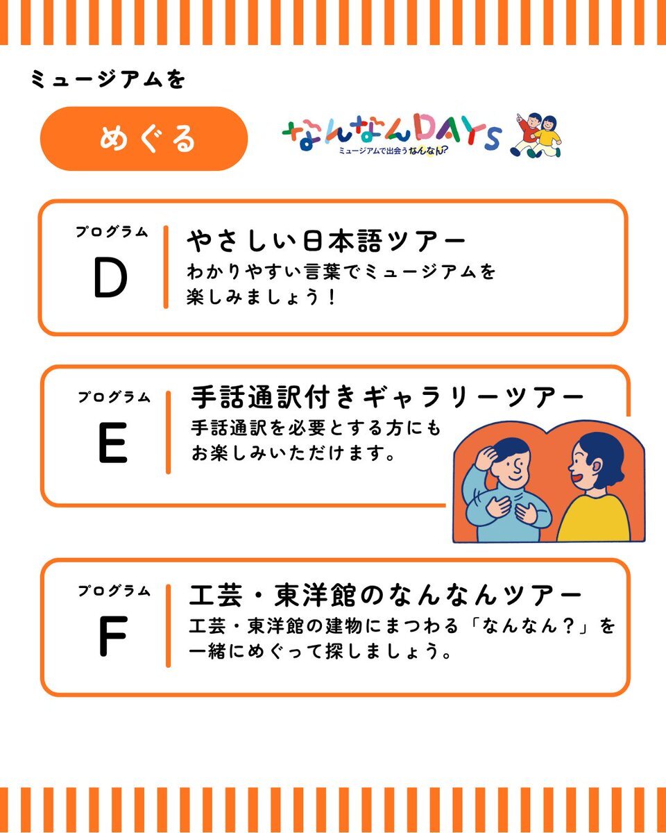#なんなんDAYS 開催情報② 11月15日と16日に開催予定の「なんなんDAYS」 📷ミュージアムで困ったことがあったらどうしたらいいの? 📷スタッフにお知らせください! 大原美術館、倉敷考古館のバリアフリー情報は、「なんなんDAYS」特設サイトでチェックしてください。 #大原美術館 #倉敷考古館 pic.x.com/VhbIvbXRzT