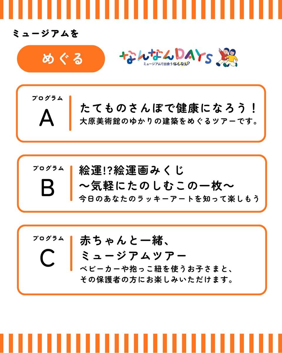 #なんなんDAYS 開催情報⑨ いよいよ、「なんなんDAYS」開催まであと少し! なんなんDYASを楽しんだあとは、アンケートにご協力ください。 オリジナルスタンプを押して楽しめます。 #大原美術館 #倉敷考古館 pic.x.com/hheFOv3nfl