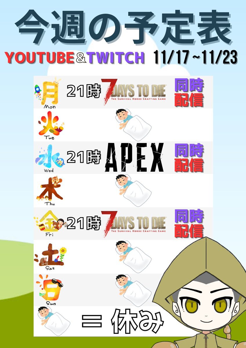 Vtuberの朝は遅い 明日からの予定を出しておくぞ‼ #おはようVtuber #バーチャルYouTuber #個人勢VTuberだって拡散されたい #youtube #twitch #7DTD #APEX #11月のVTuberフォロー祭り︎
