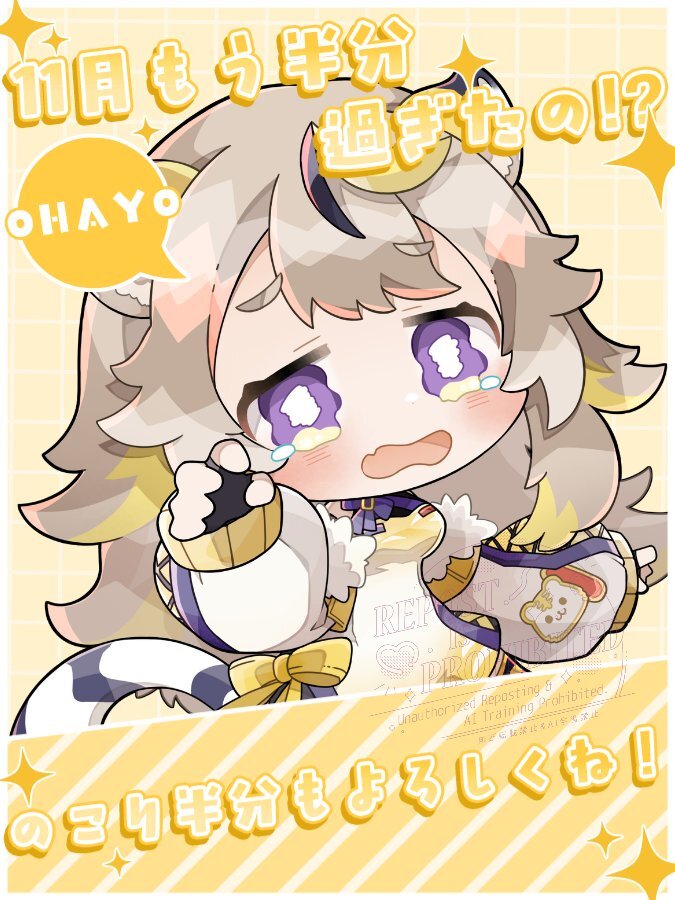 ⠀// 🐯おはようございます~~☀️☀️ \\ そう!もう!!半分なんです!!信じられます!!?? わーーーーーーーーこないだ11月やねぇって言ってたとこやのにやっぱし一瞬やぁ…コワイネ… 今日も夜Rust配信あるのでよろしくお願いします!!🙌✨ #おはようVtuber #個人VTuberだって拡散されたい pic.x.com/nfWQwKw3RC