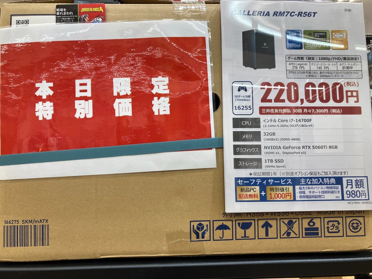 🔥【9/20~23まで限定】 先着1台限り! 高性能ゲーミングPC《GALLERIA》が衝撃価格✨ 人気のFPSタイトルが240FPSでプレイ出来るほど高性能 通常234,880円 → 特別価格220,000円(税込)‼️ このスペックでこの価格は“この日だけ”。 お取置OK!お振込みでもOK!お電話ください! #GALLERIA #パソコン