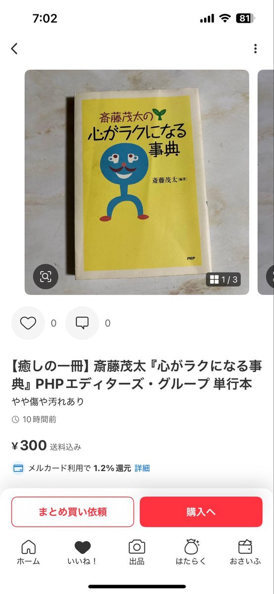 元ポストの画像がXで表示されない仕組みに変わっていたみたいなので別個に貼っておきます 11月30日には出品をやめます #メルカリ #値段交渉可 #即購入OK #コメ無し即購入OK #即購入可 #斎藤茂太 #本 #小説 pic.x.com/ECw2CHv5CJ