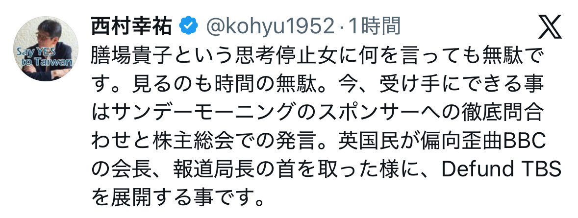 TBSのサンデーモーニングや報道特集の偏向報道など毎度のことだし… #サンデーモーニング #TBS #膳場貴子 #偏向報道を許すな x.com/y___hasegawa/s…