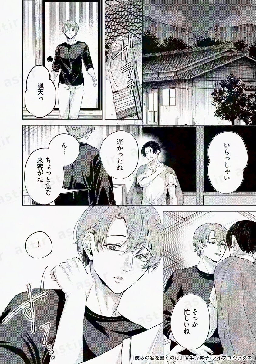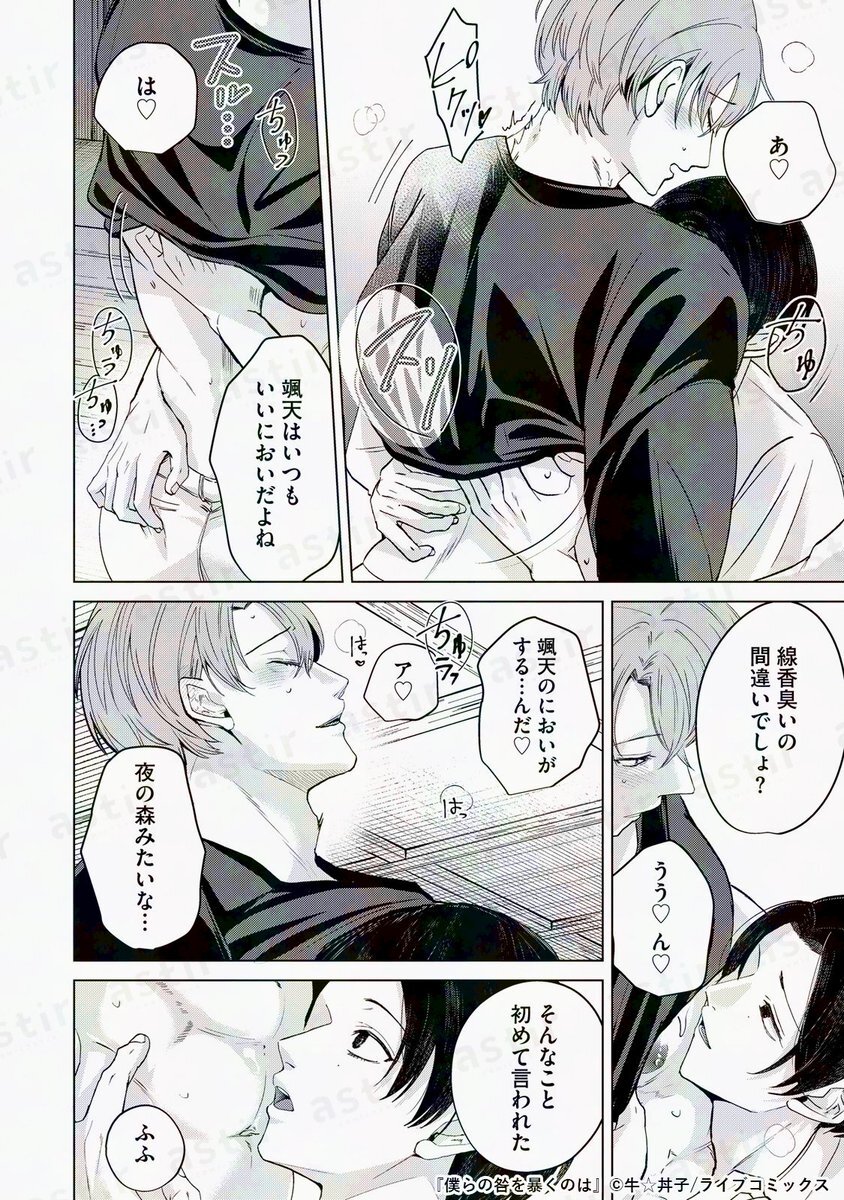 アスティル創刊2周年 おめでとうございます💐♡ ⑥ #僕らの咎を暴くのは が 大好きです〜(՞⸝⸝ᵒ̴̶̷᷄꒳ᵒ̴̶̷᷅⸝⸝՞)💕 村の異様な空気や風習、颯天くんの手段を選ばんド執着心がオタク心をソワソワされて毎月楽しみにしてます〜!なにより丼子先生の描くムチムチ𝒃𝒐𝒅𝒚が最高で大好きです🫶☺️💓 x.com/astir_comic/st…