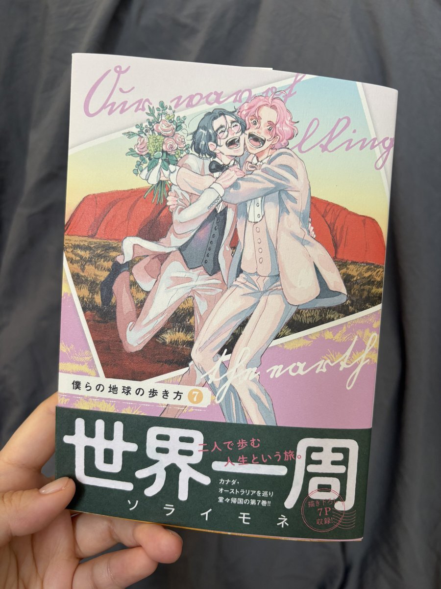 『#僕らの地球の歩き方⑦』 涙が自然と出てきて胸の奥が温かくなる、そんな最終巻でした♡旅を通じて二人の穏やかで温かい愛を観ることができて本当に幸せです🫶🏻✨ また帰国してからの二人に会いたいです♡どうかどうか🧎🏻♂️!!! #僕らの地球の歩き方7巻発売 #世界一周 #ソライモネ(@soraimo69)先生 pic.x.com/S118MWTbN4