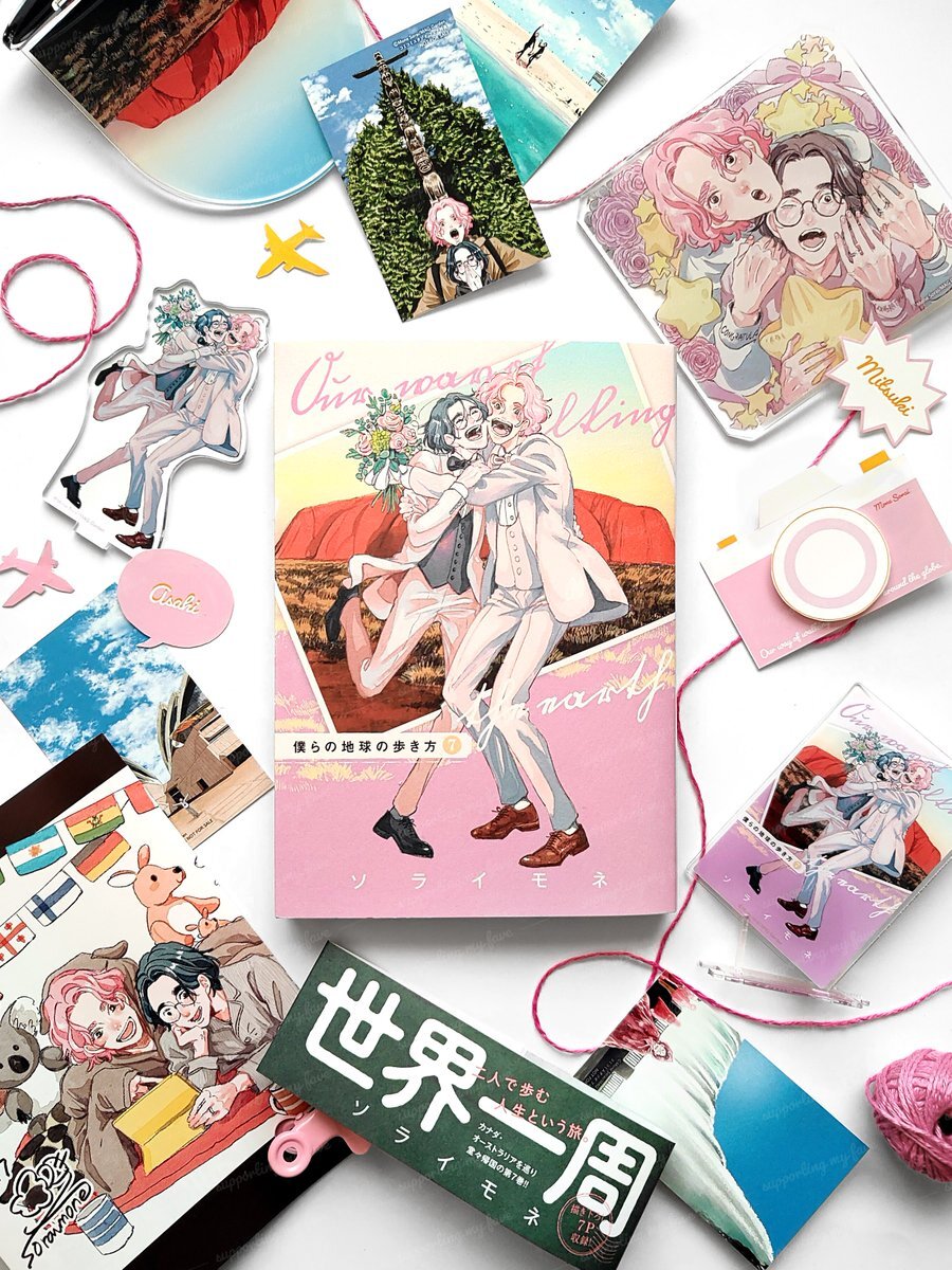 あとグッズ感想も伝えさせてください🙏🏻✨ほんとにグッズが可愛すぎて感動してます!!! アクコは本当にいつも天才的に可愛いです🩷アクスタも幸せ溢れるおしゃれなふたり最高🩷書影アクリルカードスタンド考えた人天才!!な可愛さ🩷 #僕らの地球の歩き方7巻発売 #世界一周 #ソライモネ(@soraimo69)先生 pic.x.com/uhtA1GxPoh