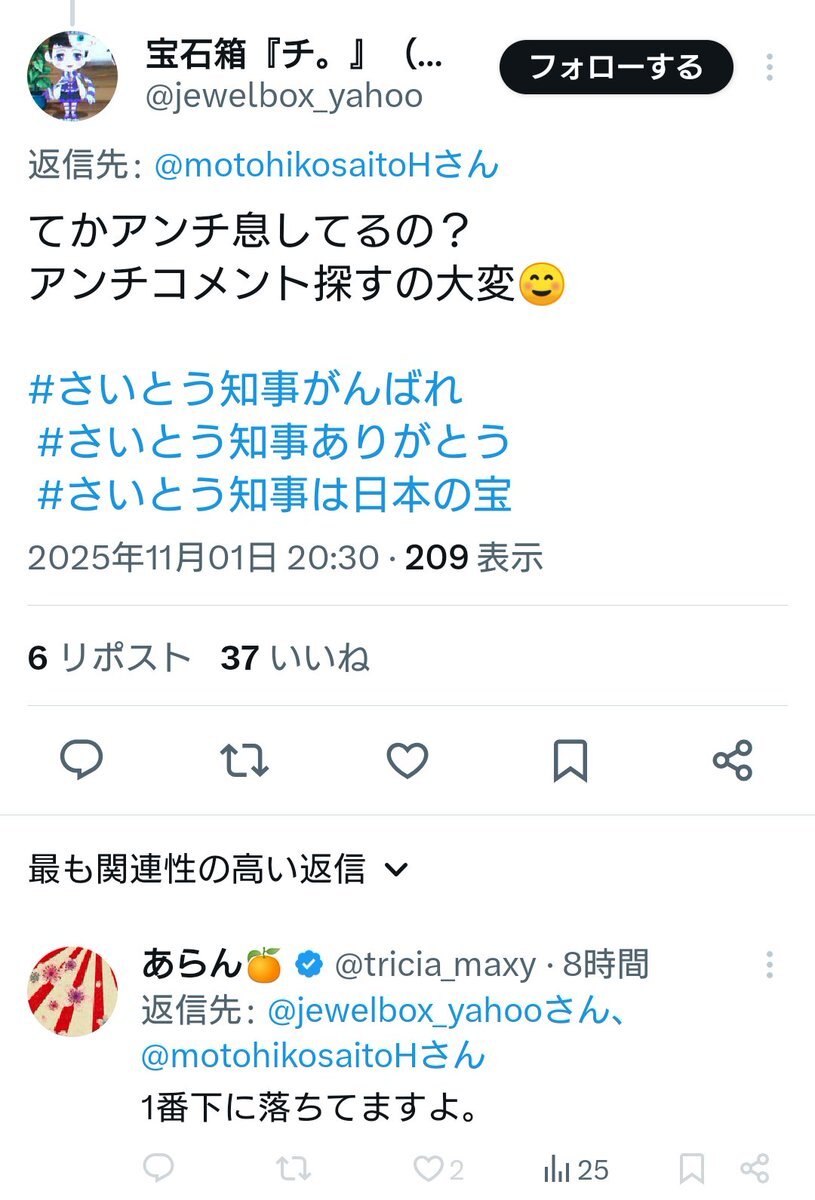 【悲報】Xのアルゴリズムを知らずにぬか喜びしていた古参斎藤元彦支持者、グロックに現実を叩き込まれる。 彦信「アンチ息してるの?アンチコメ探すの大変☺️」 グロック「アンチ率70%です。あなたはエコチェンに陥っています。」