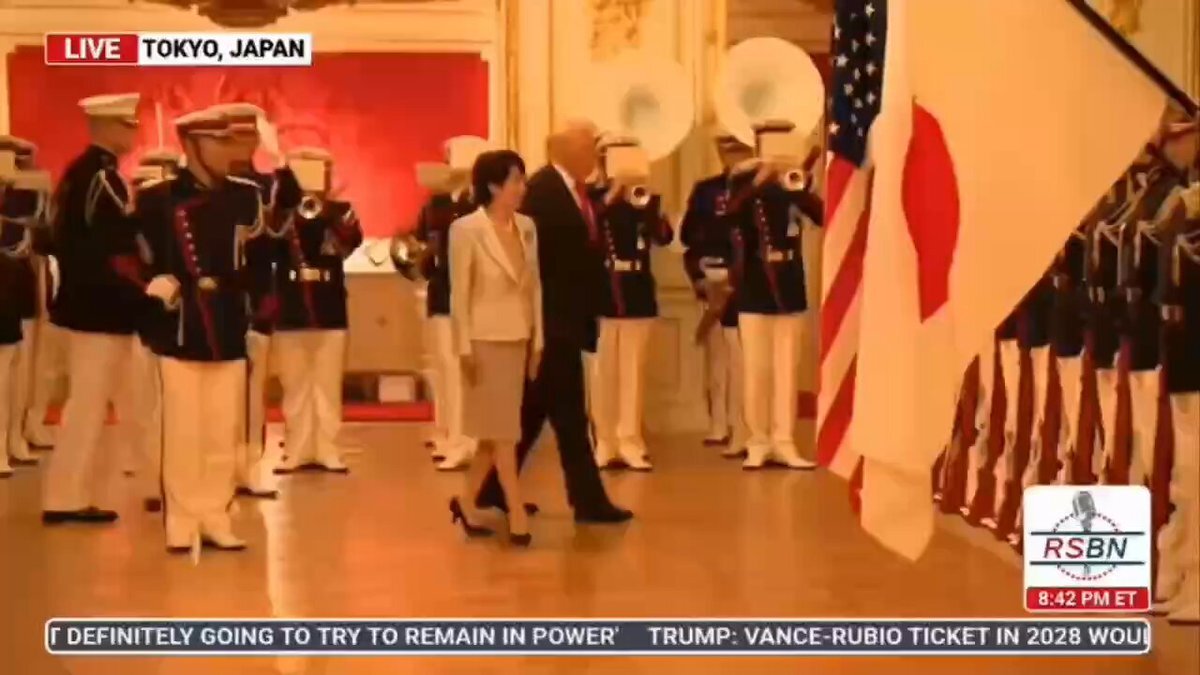 It looks like President Trump didn't realize he was supposed to stop in front of the US and Japanese flags. Prime Minister Takaichi seemed confused that Trump kept walking, and then followed proper protocol and bowed in front of the flags.