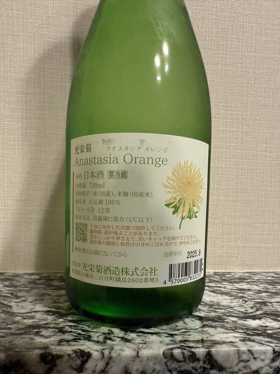 本日の日本酒はー。 光栄菊酒造さんの光栄菊Anastasia Orange。 さっぱりそしてガス感があってスルスル飲んでしまう。後半はピリっとして後味もスッキリ。食中で飲むのにいいですねー。 #光栄菊酒造 #光栄菊 pic.x.com/862Ja8ooEg