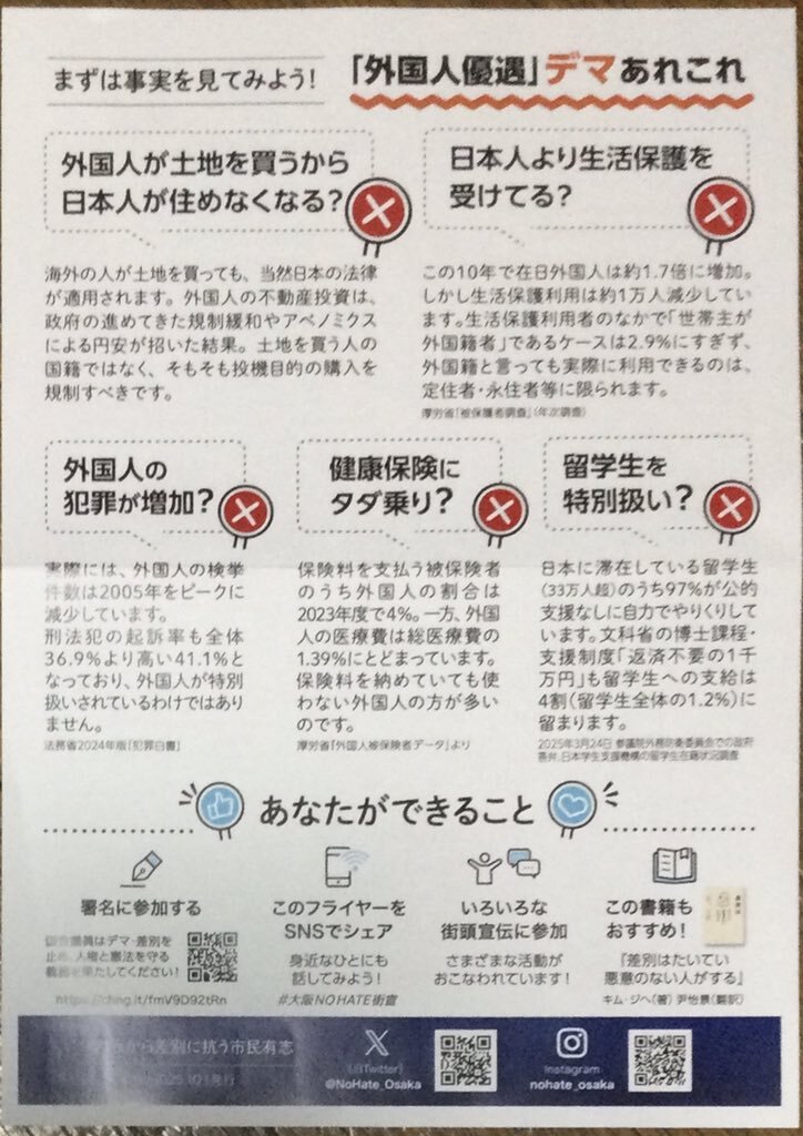 「国民の安全・安心のための不法滞在者ゼロプラン」がこの国で生きる海外ルーツの人達を不安に陥れてる。国が政治家が民衆が差別でいのちの選別に加担する事は結局自分達の暮らしやいのちも危うくするだけと伝えるアクションします。 日時:11月14日(金)18時頃から 場所:JR名古屋駅東口交番南東側歩道