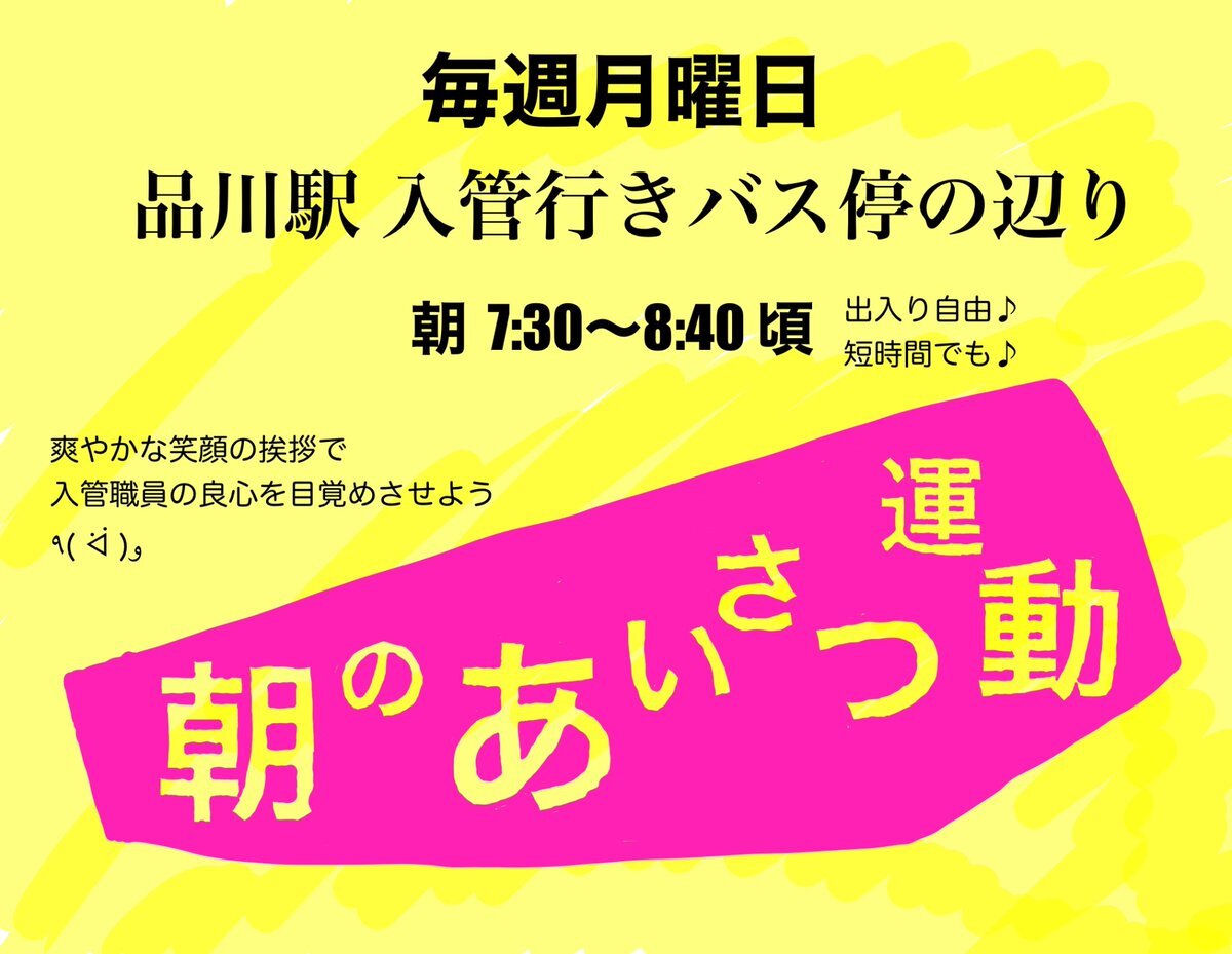 朝のあいさつ運動@品川駅入管行きバス停前 入管職員の皆さん、おはようございます🌞 #不法滞在者ゼロプランは国際人権法違反 #入管法改悪反対アクション 悪いのは外国人じゃなく自民党 pic.x.com/pWEs9WgbmC