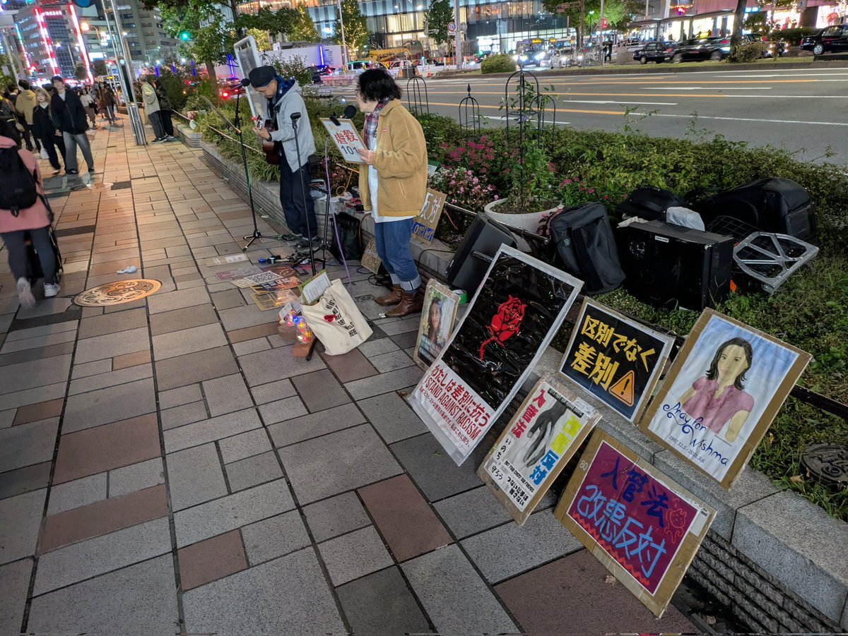 おしまいがけに日本語話者でない方が声をかけてくださって、スマホの翻訳で会話して、「外国人差別に反対する市民です」と告げたら、たいへん喜んでくださって、もう一曲披露。 #ノーヘイト街宣 #デマと差別を許さない街宣 #デマと差別が蔓延する社会を許しません #入管法改悪反対アクション