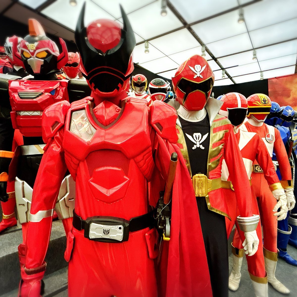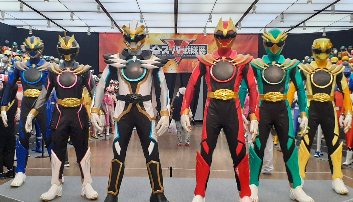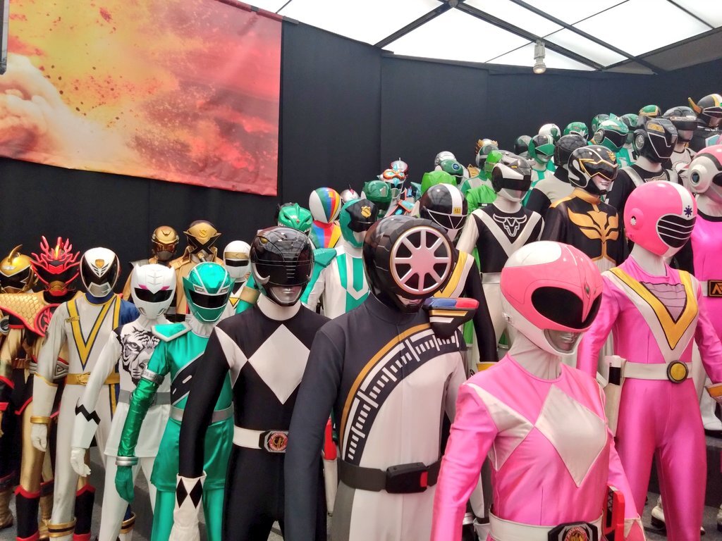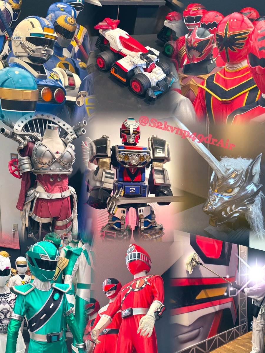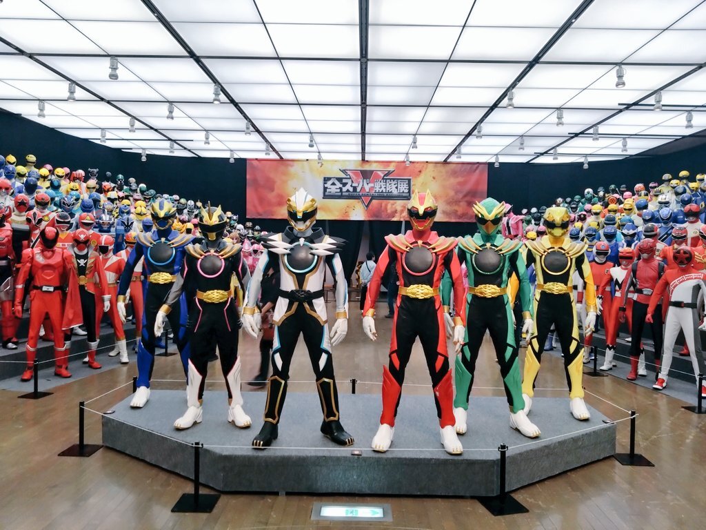 #全スーパー戦隊展 最高でした ߹-߹ 撮影禁止のエリアには実際撮影で使用していたアイテム、スーツ、衣装などがあり、貴重な資料が展示されてました*゚ 一番興奮したのはゴーバスターズの破損verマスク!! あと烈火大斬刀も大きかった〜!! 全員大集合は圧巻!!! ずーっと見ていたかった… pic.x.com/GyzQnBzwRI