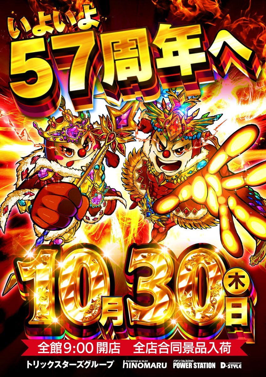 🌈本日のご案内🌈 🌈創業月間🌈 🌈10月30日(木)🌈 🌈営業時間10:00スタート🌈 遅刻厳禁の入場抽選は 🏳️‍🌈🏳️‍🌈9時45分開始🏳️‍🌈🏳️‍🌈 ⭐️創業月間ラストスパート⭐️ 抽選からのご参加お待ちしております‼ #創業月間 #全店合同 #パチンコ #スロット #ヒノマル #全台 pic.x.com/gcW7dVFGWq