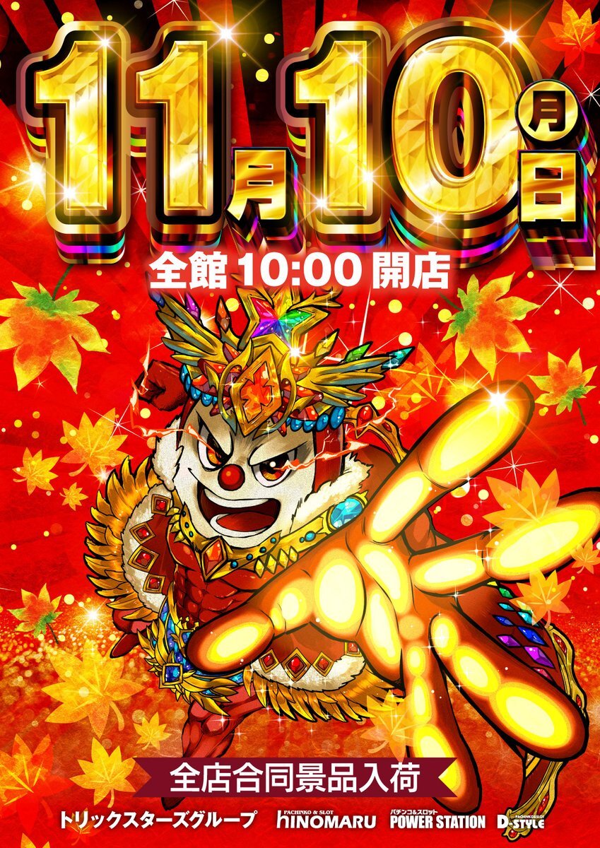 🌈本日のご案内🌈 🌈11月10日(月)🌈 🌈営業時間10:00スタート🌈 遅刻厳禁の入場抽選は 🏳️‍🌈🏳️‍🌈9時45分開始🏳️‍🌈🏳️‍🌈 朝一抽選時間からの ご来店お待ちしております🔥 #全店合同 #パチンコ #スロット #ヒノマル #全台 pic.x.com/okEpHgXCdH