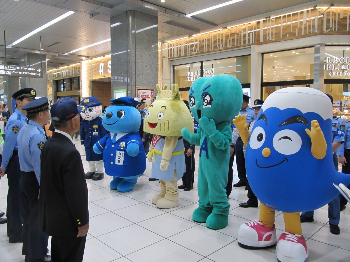 10/11(土)に静岡駅で「 #全国地域安全運動 」のキャンペーンに参加したよ。 駅利用者に対し、全国地域安全運動について、県警察マスコットキャラクターのエスピーくんとシズカちゃん、ふじっぴー、トロベー、シズラと一緒に呼びかけたよ。 安心して暮らせる地域社会をつくっていこ! #あおいくんち pic.x.com/WJm1lT224e