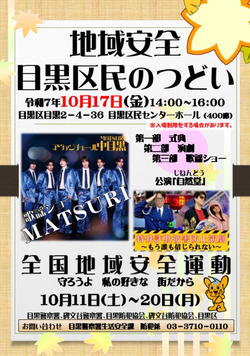 実はぽかパー後、優先席で知り合った20代の子に連れて行っていただき、地域安全区民のつどいに参加👮 初めてのハシゴを経験✨ 制服とっても似合ってました❗️ 皆さんいろいろな詐欺、ご注意下さい⚠️ 目黒区民ではありませんが安全を思う気持ちは同じです‼️ #Ruby #MATSURI #全国地域安全運動 pic.x.com/ygYXDPDhEG