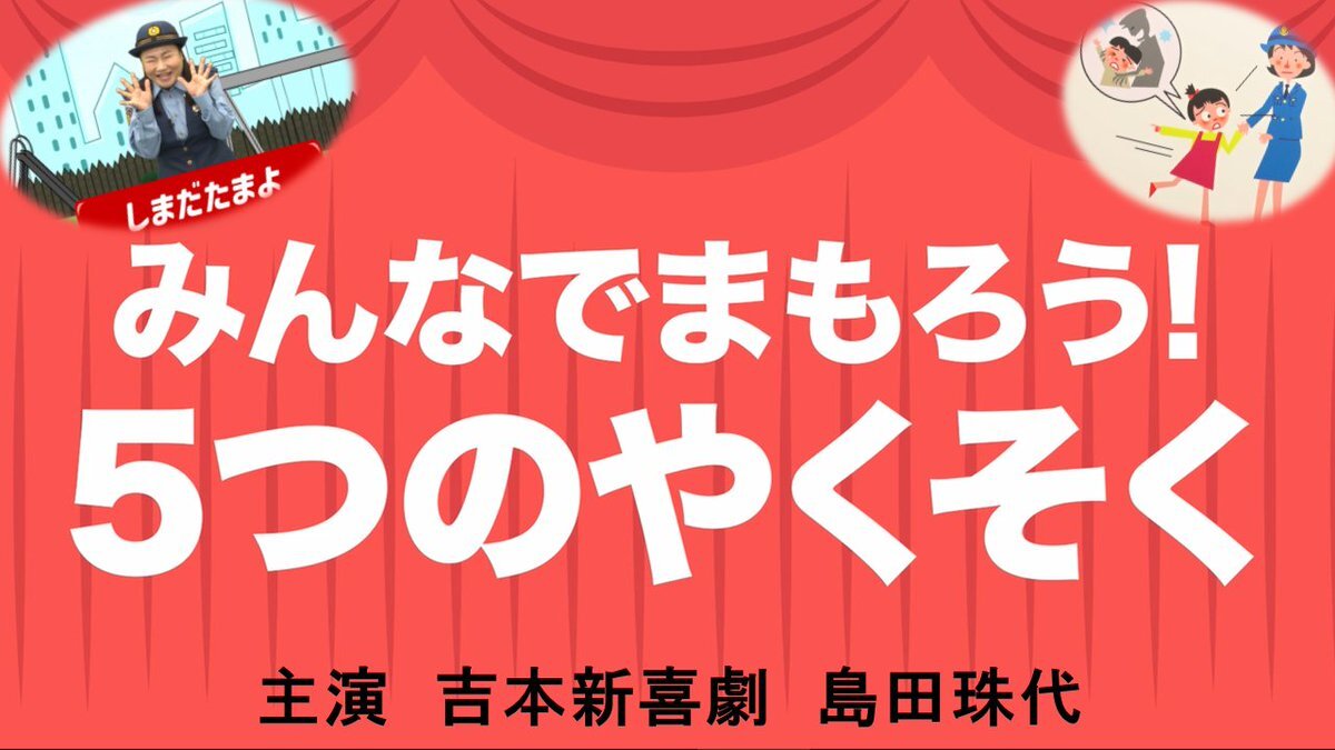 10月11日(土)から10月20日(月)まで #全国地域安全運動 を実施しています。#吉本新喜劇 の看板女優 #島田珠代さん が「みんなでまもろう!5つのやくそく」を呼び掛けています。子供達!知らない人に付いて行ったら絶対だめだよ!島田さんとのやくそくをしっかり守ろうね! youtu.be/_4hMlJYw91M