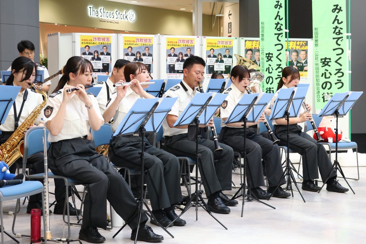 音楽隊Sです🫡 「安全・安心まちづくりフェスタ」に参加しました。県内でも特殊詐欺の被害が後を絶ちません。イベントを機に多くの方々の防犯意識が高まればと思います。 司会を務めた #相場詩織 さん、会場を盛り上げた #ビッキー #ブラウゴン #あんべぇ ありがとうございました😊 #全国地域安全運動 pic.x.com/VlQXYwOhGc