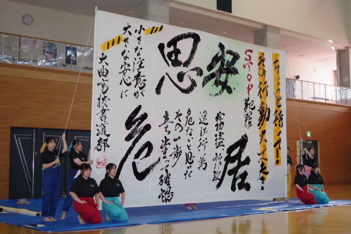 #大仙警察署】 大仙・美郷地区の全国地域安全運動出発式です🚔 大曲高校書道部員やご当地キャラクター「まるびちゃん」「 美郷のミズモ」にも協力していただきました🤝 迫力のある書道パフォーマンスに感動です!! #全国地域安全運動 #大曲高校 #まるびちゃん #美郷のミズモ pic.x.com/U8y0qT0l52