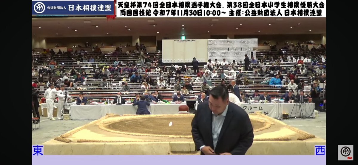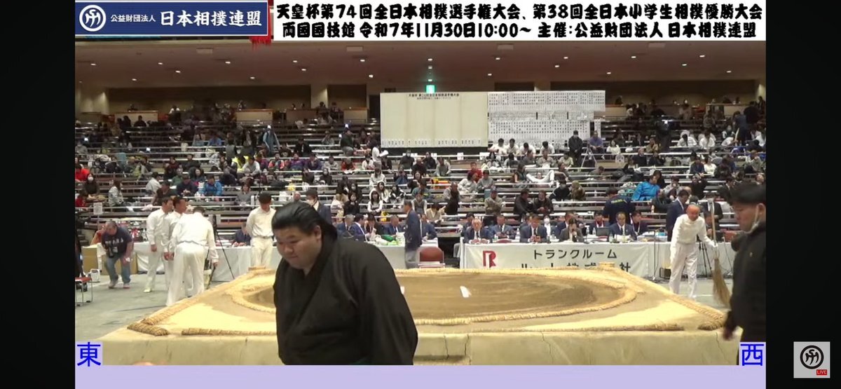 全日本相撲選手権大会を YouTubeでみてたら 音羽山親方と鶴英山が 写ってた。 スカウト兼ねた 挨拶かな? #音羽山部屋 #鶴英山 #全日本相撲選手権大会 pic.x.com/cYNiQogXbp