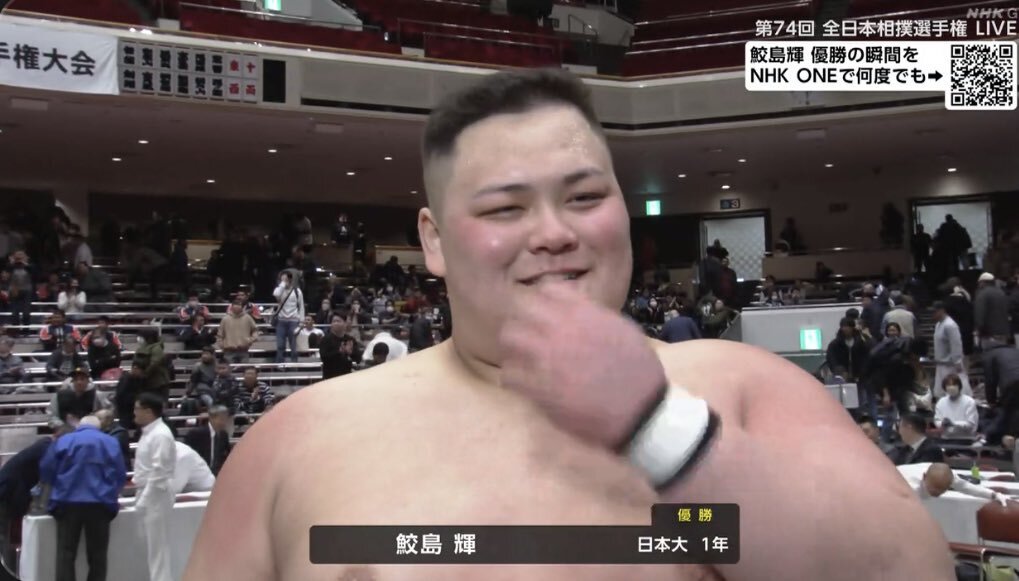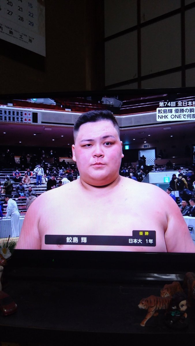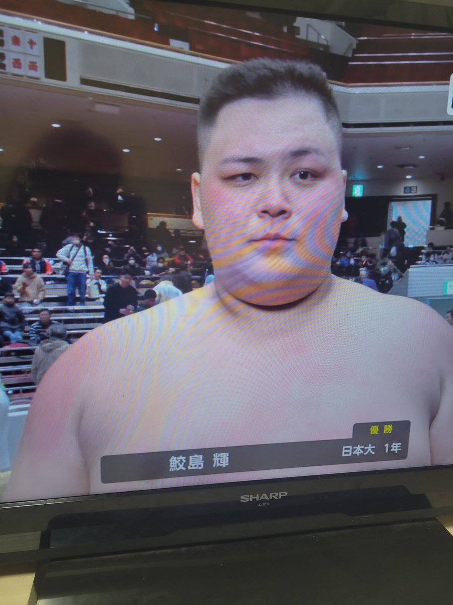 鮫島輝先輩、優勝おめでとうございます🏆 📺の前で応援💪感動です😭 あすかにとって尊敬する先輩であり、優しいお兄ちゃんです✨ #全日本相撲選手権大会 #天皇杯2025 pic.x.com/5pexHajoB1