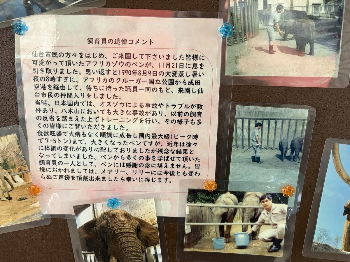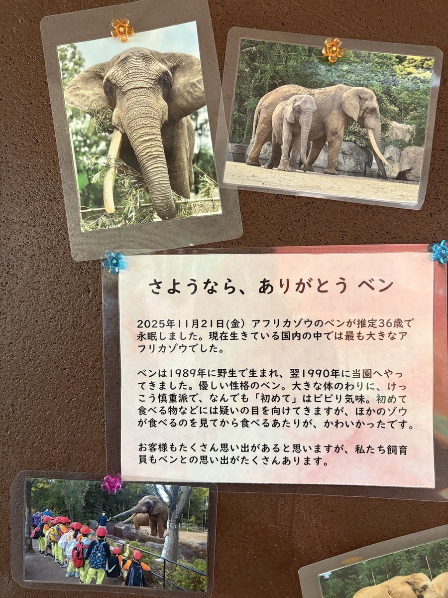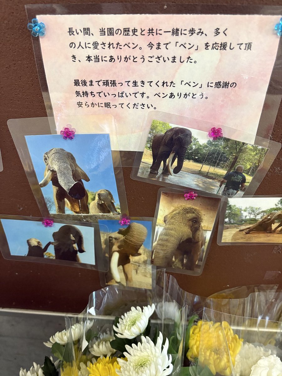こんな小さい頃から八木山で暮らしてたんだね、お花や果物がいっぱいお供えされていてノートにはお子さんの描いたベン君がいっぱいで室内を見てるリリーちゃんが寂しそうで涙が出ました。 ベンの35年の暮らしの中の少しだけだけど会えるの楽しみにしてました、ありがとう❣️ #八木山動物公園 pic.x.com/2UGuy0s7iO