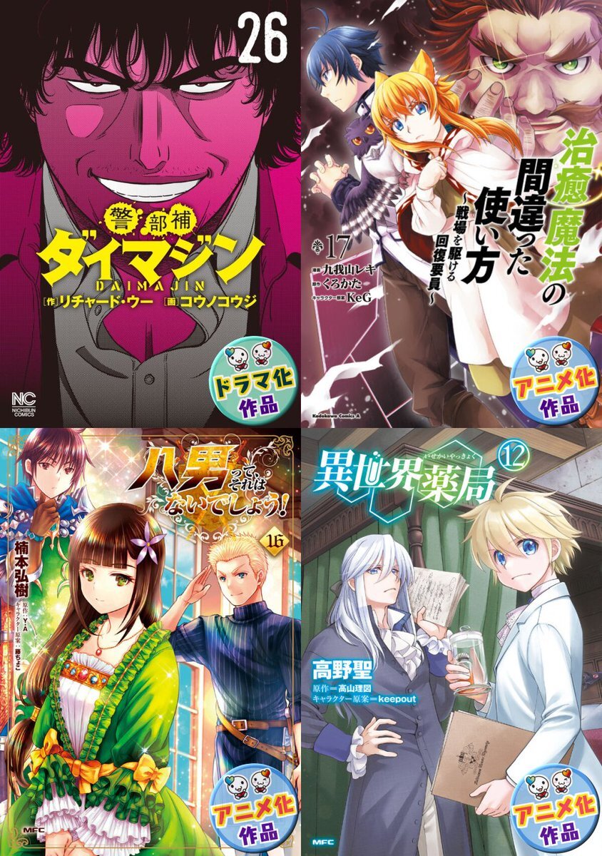 こんばんは! 入荷したコミックの一部をご紹介します♪ 「#警部補ダイマジン」「#治癒魔法の間違った使い方 #戦場を駆ける回復要員」「#八男ってそれはないでしょう!」「#異世界薬局」など他にも多数入荷しております♪ pic.x.com/WXnSaeb1ak