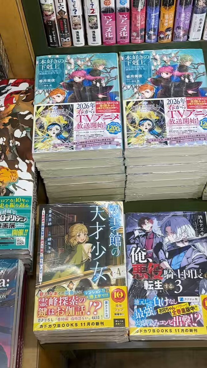 (新刊コーナー店内観測 新文芸 続き) #図書館の天才少女 #佐々木とピーちゃん #八男ってそれはないでしょう #田舎の中古物件に移住したらなぜか幼女が住んでいた #ジュリとエレナの森の相談所 #明日もいい日でありますように #汝暗君を愛せよ x.com/kuma_hachi_b1/…