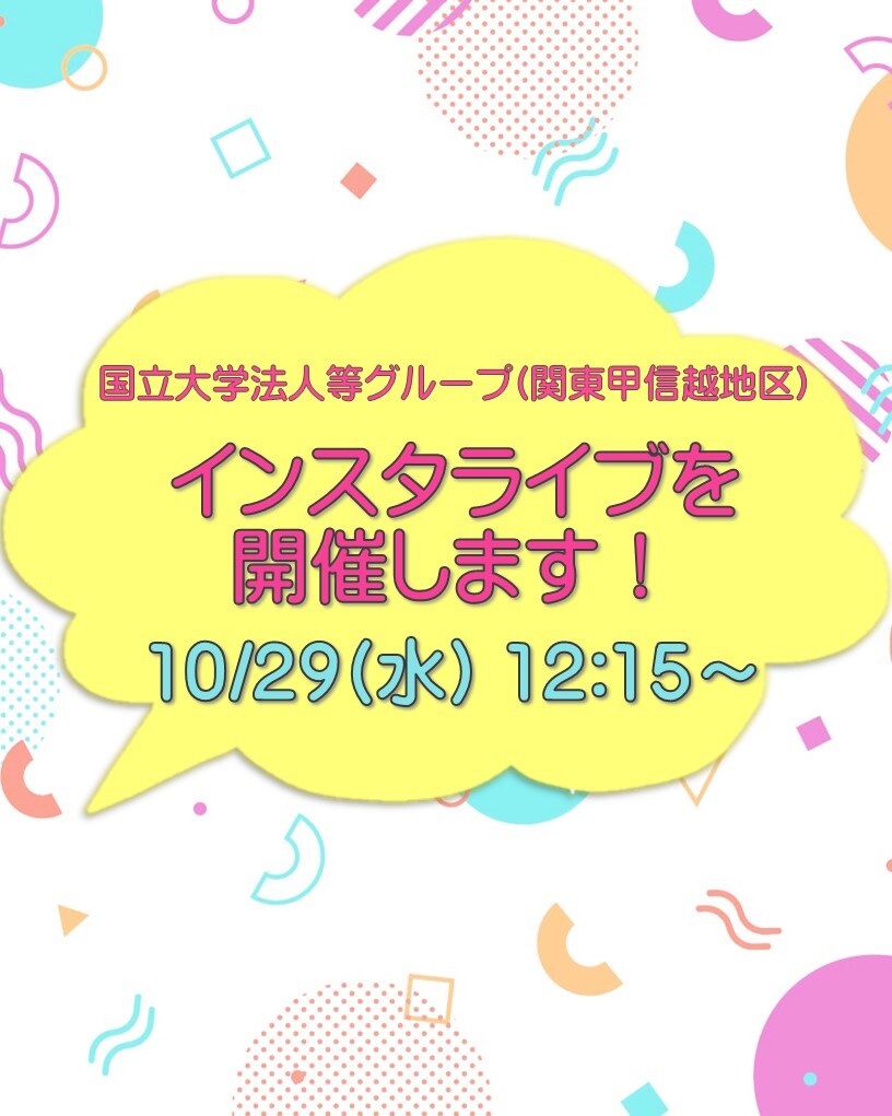 国立大学法人(関東甲信越地区)がお昼時間にインスタライブを開催するようです!!気になる方はチェック!! #公務員 #国立大学法人 #関東甲信越 #就活 #公務員試験研究所 x.com/kanto_koshin/s…