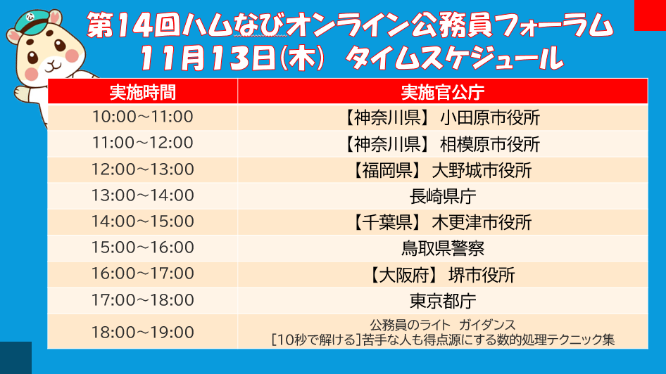 日本最大級の公務員専門 オンライン業務説明会!! 「ハムなびオンライン公務員フォーラム」 11月13日(木)実施官公庁情報 ★参加無料・要予約 お申込は・・・ komuin.umedai.jp/news/online-ko…
