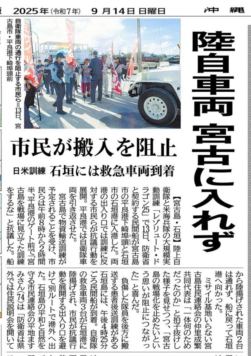 これは公務執行妨害にはならないのかな? 自衛隊の仕事は公務ではないのか? それとも住民(国民?)に変に遠慮してるのか? 陸自、反対派妨害で物資輸送訓練を断念 沖縄・宮古島、日米共同実働訓練の一環(産経新聞) #Yahooニュース #自衛隊 #公務執行妨害 #警察 news.yahoo.co.jp/articles/fc424…
