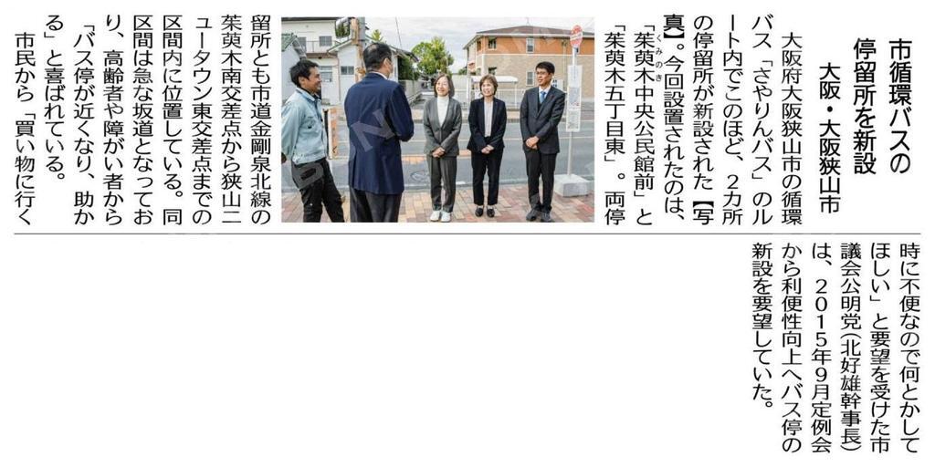 #公明党がいる安心 #RICE #大衆とともに #小さな声を聴く力 市循環バスの停留所を新設/大阪・大阪狭山市 #公明新聞電子版 2025年11月15日付 komei.or.jp/newspaper-app/ pic.x.com/khrBLPwgm7