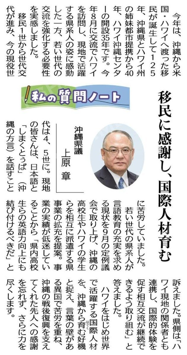 #公明党がいる安心 #RICE #上原章 #沖縄県議会議員 #大衆とともに #小さな声を聴く力 (私の質問ノート)移民に感謝し、国際人材育む/沖縄県議 上原章 #公明新聞電子版 2025年11月12日付 komei.or.jp/newspaper-app/ pic.x.com/i9ZVH6sT9m