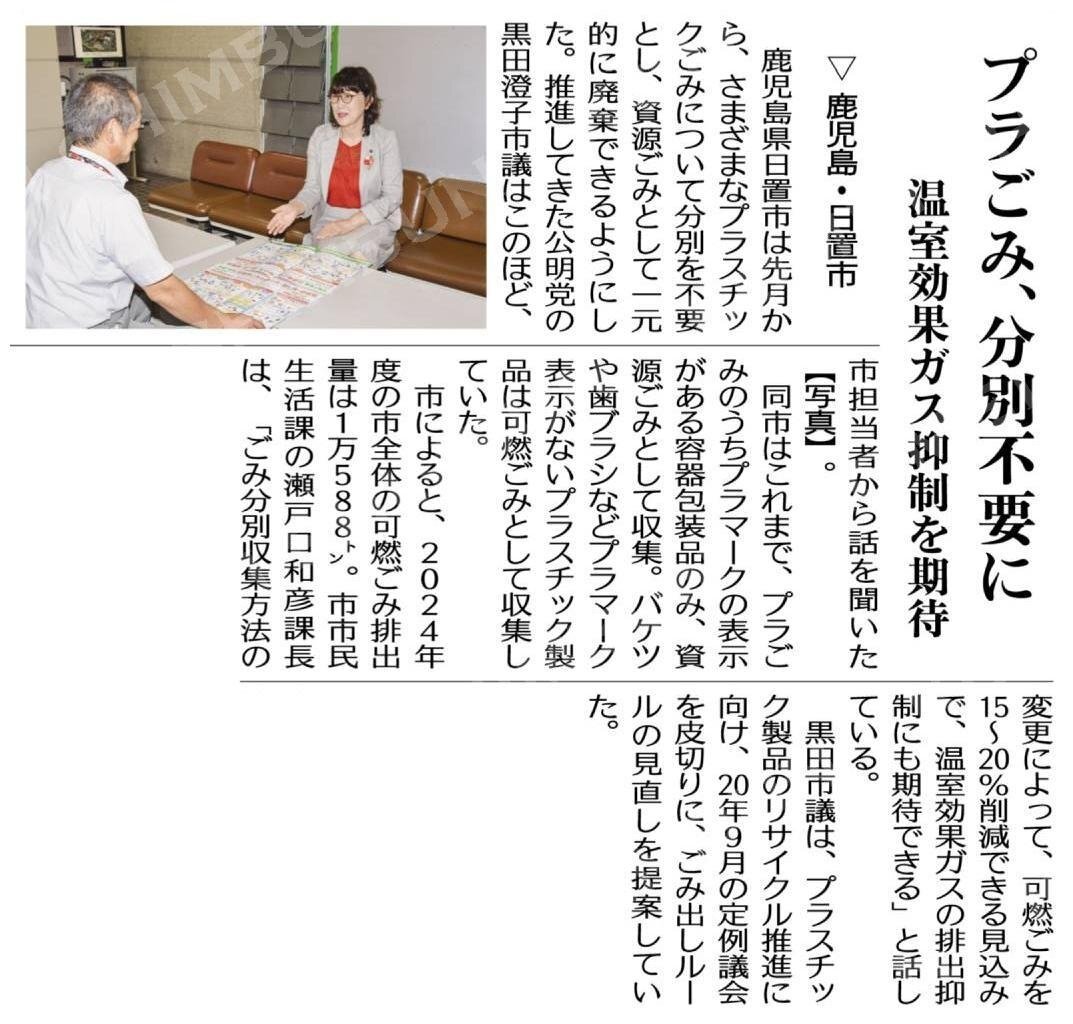 #公明党がいる安心 #RICE #黒田澄子 #日置市議会議員 #大衆とともに #小さな声を聴く力 プラごみ、分別不要に/温室効果ガス抑制を期待/鹿児島・日置市 #公明新聞電子版 2025年11月12日付 komei.or.jp/newspaper-app/ pic.x.com/IOqTzzxd7q