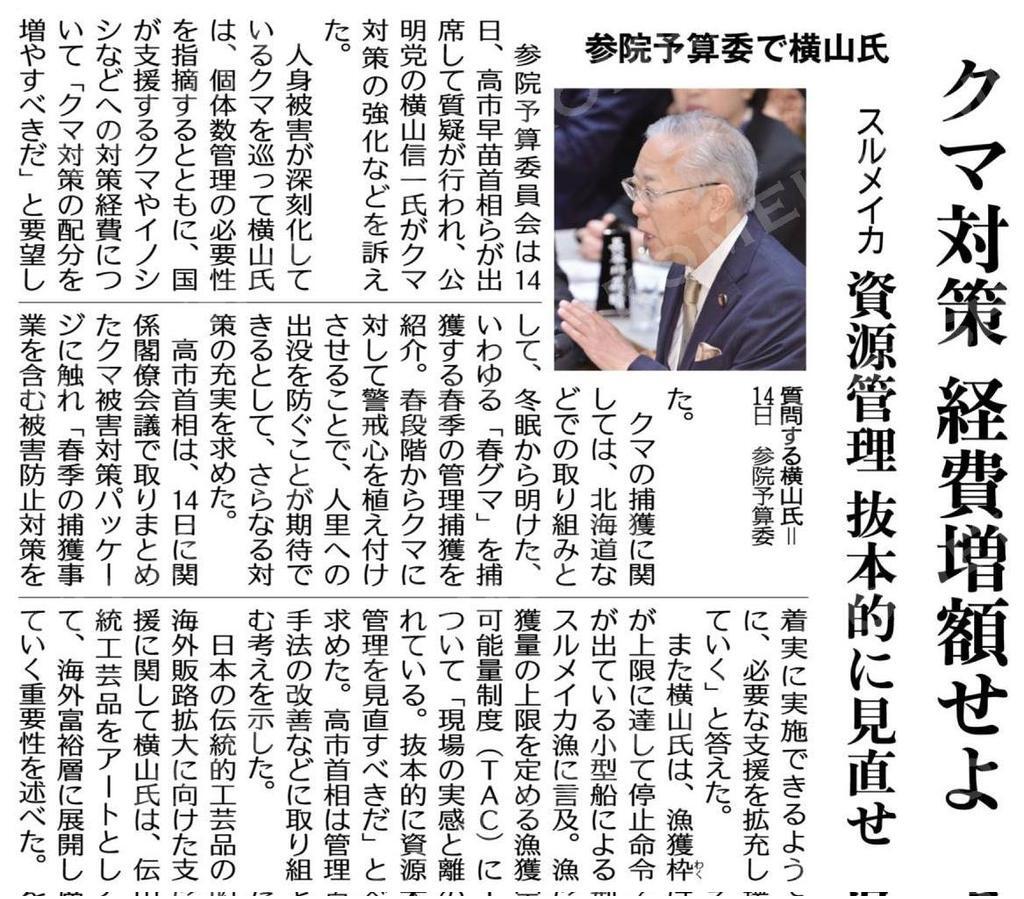 #公明党がいる安心 #RICE #大衆とともに #小さな声を聴く力 クマ対策、経費増額せよ/スルメイカ、資源管理を抜本的に見直せ/参院予算委で横山氏 #公明新聞電子版 2025年11月15日付 komei.or.jp/newspaper-app/ pic.x.com/wp9uVJ21EN