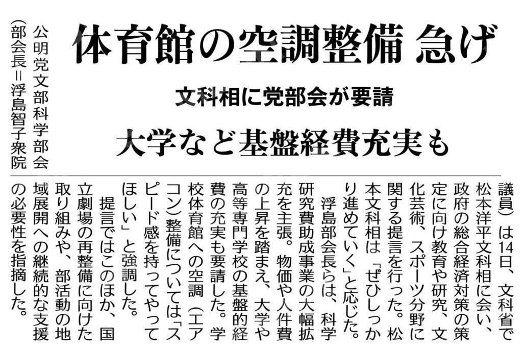 #公明党がいる安心 #RICE #大衆とともに #小さな声を聴く力 体育館の空調整備急げ/大学など基盤経費充実も/文科相に党部会が要請 #公明新聞電子版 2025年11月15日付 komei.or.jp/newspaper-app/ pic.x.com/Mso1o2ykJN