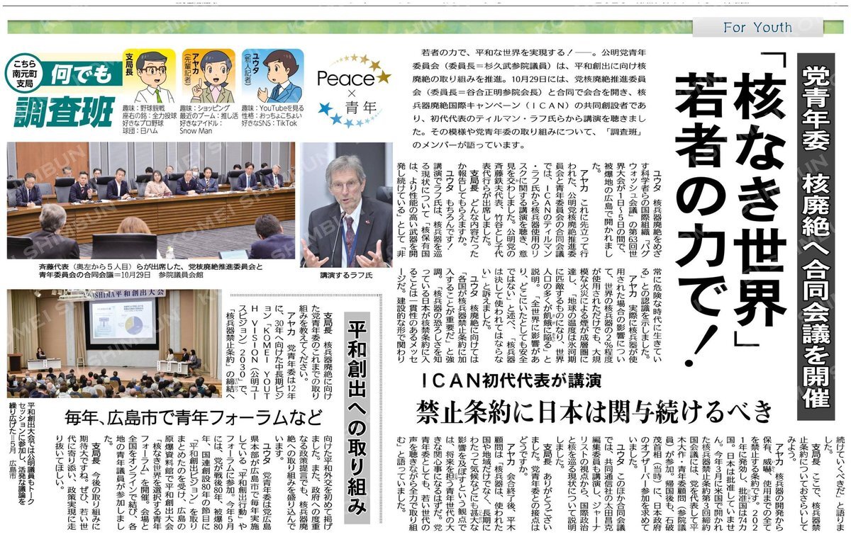 #公明党がいる安心 #RICE #大衆とともに #小さな声を聴く力 (For Youth こちら南元町支局何でも調査班 Peace×青年)「核なき世界」若者の力で!/党青年委、核廃絶へ合同会議を開催/ICAN初代代表が講演 #公明新聞電子版 2025年11月13日付 komei.or.jp/newspaper-app/ pic.x.com/ebvA6n4HwY