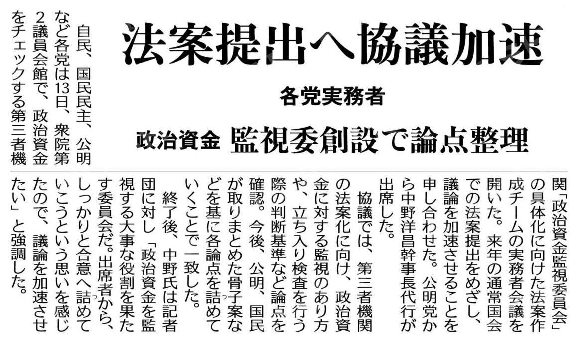 #公明党がいる安心 #RICE #大衆とともに #小さな声を聴く力 法案提出へ協議加速/政治資金、監視委創設で論点整理/各党実務者 #公明新聞電子版 2025年11月14日付 komei.or.jp/newspaper-app/ pic.x.com/qZDTA1CkPz