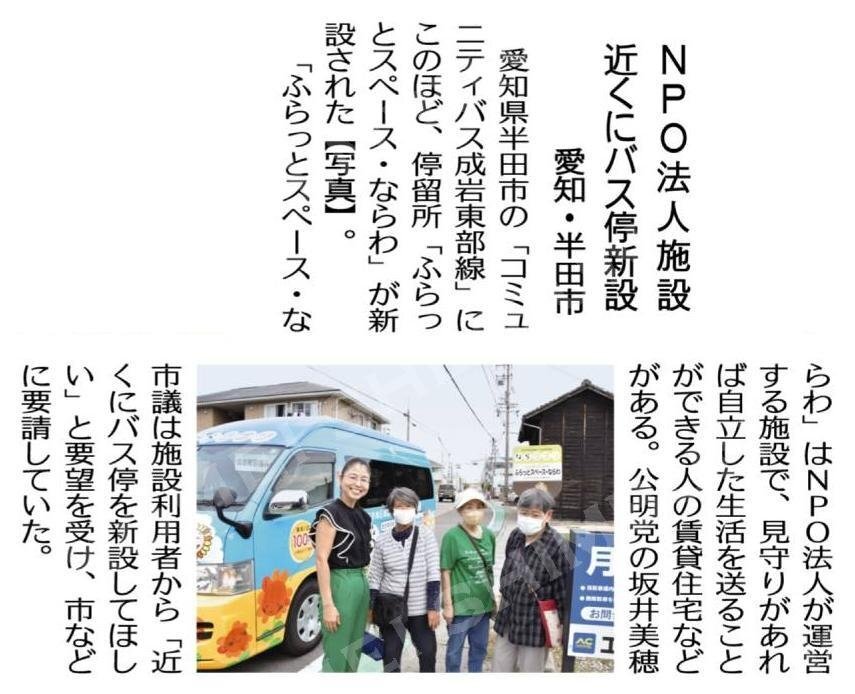 #公明党がいる安心 #RICE #坂井美穂 #半田市議会議員 #大衆とともに #小さな声を聴く力 (街角だより)NPO法人施設近くにバス停新設/愛知・半田市 #公明新聞電子版 2025年11月13日付 komei.or.jp/newspaper-app/ pic.x.com/DPIk8GOHzC